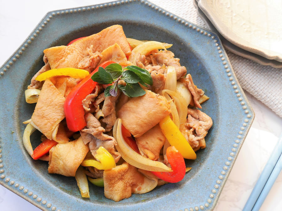 板麸と豚肉のスパイシーカレー炒めランチ・夕食