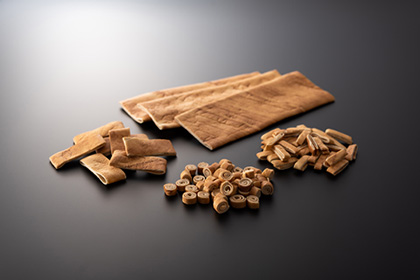 庄内麸は「板麸」を代表する麸として広く知られ、現在では全国で食されています。薄く延ばした生地を棒に巻き付け、直火で焼き上げ板状にした独特のもので、香ばしい素朴な味わいが幅広い料理と良く合うことから、一般家庭はもとより、料亭やレストランなど、和食を供するプロの現場でも長年にわたり愛されています。