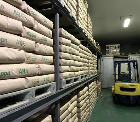 原料の小麦粉の粉末を貯蔵。