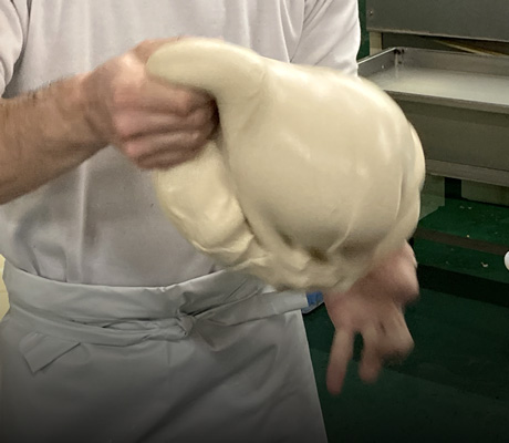 再度練り合わせて、職人の手によって長いひも状の形に成形します。