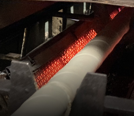 専用圧延装置によって平らな形に成形され、棒状に巻き上げられていきます。